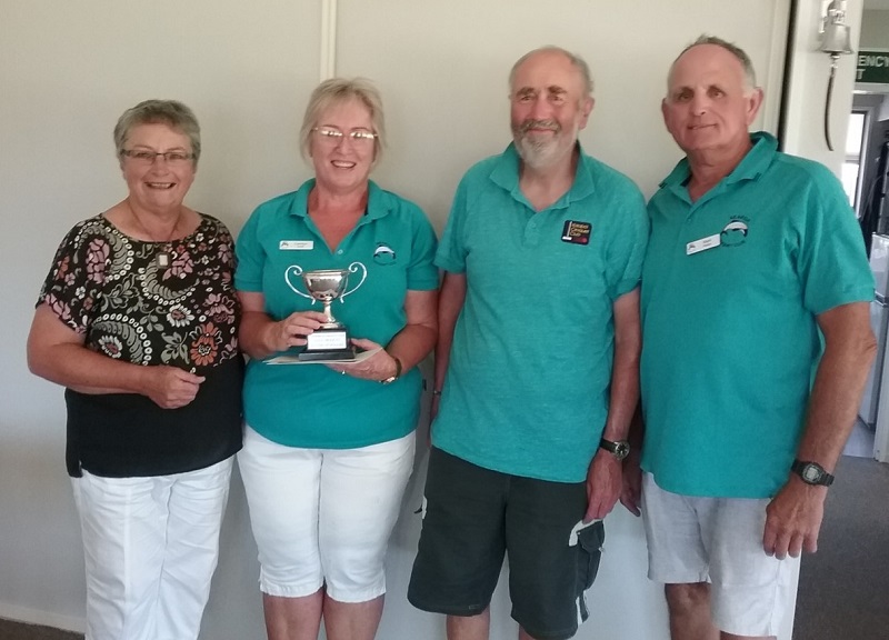 The finalists were Carolyn Smith and Mark Walker from the Akaroa club. This was a repeat of the grade singles held on Waitangi weekend. However this time Carolyn came out on top beating Mark 7-4. Third place was Ian Hobbs from Kaiapoi overcoming fellow club member Adrienne Lamb 7-4.