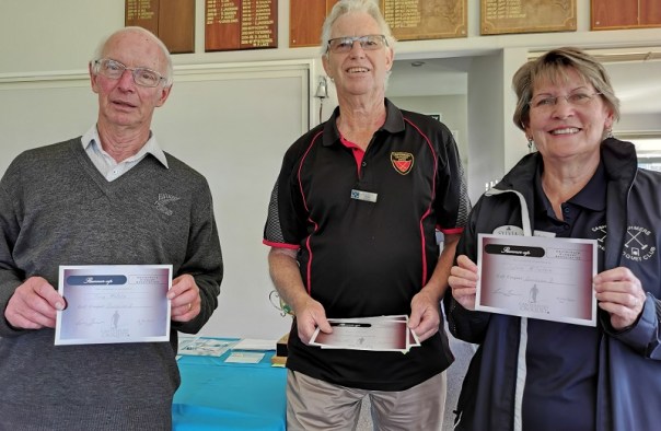 GC interclub-Div 2 Runners-up, Cashmere, Tony Waters, Sylvia MacFarlane. Absent: Ken Lomax, Merv Sarson