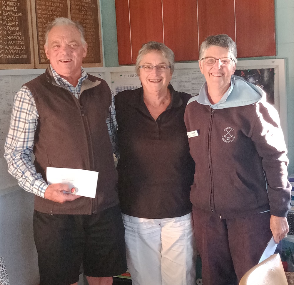 The CCA GC Open Doubles tournament was held on Sunday 12th at Cashmere Croquet Club. Following heavy dew the day turned sunny and warm, cooling down as play continued into the early evening.